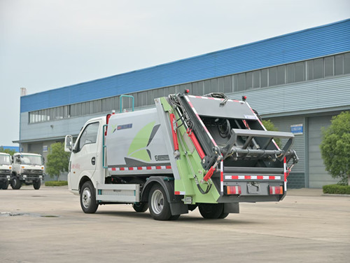 2.工作原理:整车为全密封型,自行压缩、自行倾倒、压缩过程中的污水全部进入污水箱,彻底的解决了垃圾运输过程中的二次污染,具有压力大、密封性好、操作方便、安全等优点。